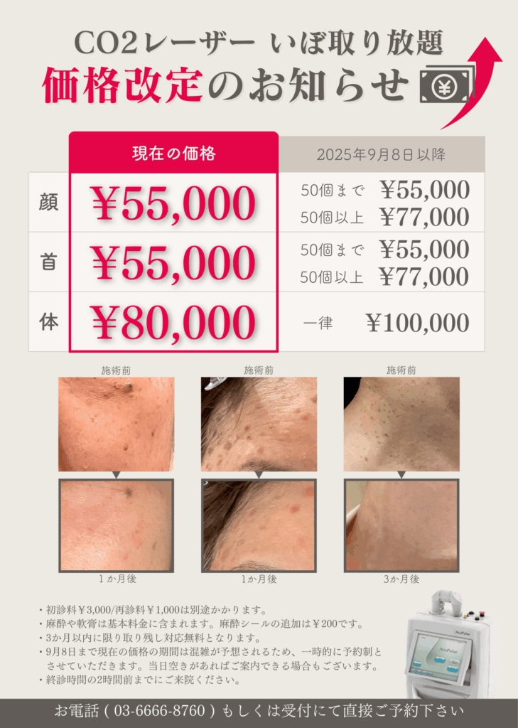 CO2レーザーによるイボ取り放題価格改定のお知らせ|9月8日(月)